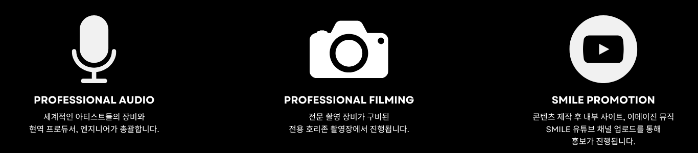 레코딩 스튜디오부터 호리존 촬영장까지 전부 이메이진 뮤직 소유의 스튜디오에서 진행합니다.